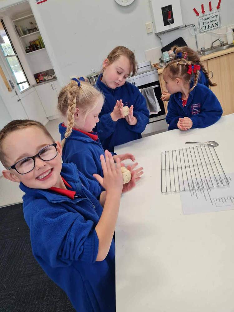 Additionally, we run a student-led café called 'Toppy Fresh' every Wednesday. Each week, different students prepare and cook a snack, which they sell for $1 during recess. This activity offers students valuable life skills, a sense of responsibility, and opportunities for peer support, as older students cook alongside younger students.